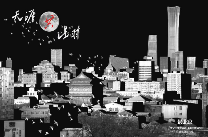 北京于我,从来不是单一的面貌。它像一本摊开的立体书,每一页都叠印着不同时代的笔触。在这组《北京拼贴》中,我试图用镜头去做一场“减法”——透过长焦俯视,剥离建筑的体积与纵深感,只留下最具代表性的立面轮廓,再经后期处理,让复杂的城市肌理呈现出剪纸般扁平而强烈的视觉效果。同时我刻意创作了月满高悬的意向,让天际那一轮圆月像一枚永恒的印章,为这场时空对话定格下“天涯共此时”的诗意瞬间。