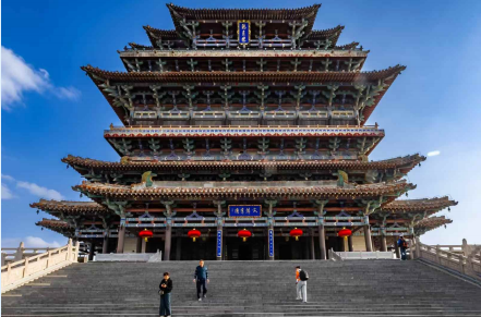 山西永济鹳雀楼是我国四大名楼之一,位于山西省永济市蒲州古城的北门,是我国最古老的楼阁之一。鹳雀楼高33米,共有三层,每层都有三间房,有四面墙,四面墙的门窗上都有精美的图案。阁楼临近黄河,因常有鹳雀栖息其上而得名。唐朝诗人王之涣在担任蒲州知州时写下了《登鹳雀楼》这首脍炙人口的千古绝唱。(徐勇 文/图)